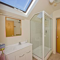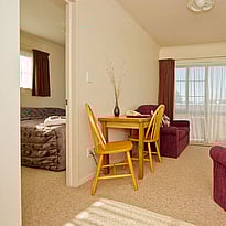 This upstairs 1 bedroom unit has a bathroom with shower, a separate toilet, comfortable king bed, (twin single beds available if preferred), cooking facilities, flat screen TV and DVD player, an armchair, a two-seater couch and a balcony off the lounge.