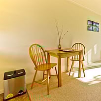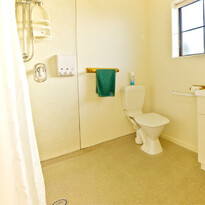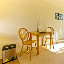 This ground-floor 1 bedroom unit has a comfortable king bed (or 2 twin single beds if preferred) and ensuite with accessible facilities. It has well-equipped cooking facilities, flat screen TV and DVD player, and a single sofa bed. It also has a sliding door to a small courtyard area, overlooking the garden.