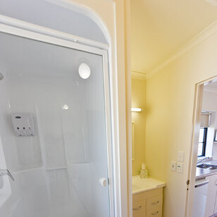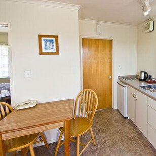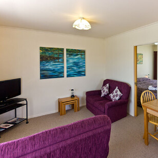This upstairs 1 bedroom unit has a comfortable king bed (or 2 twin single beds if preferred), and an ensuite with shower. It has well-equipped cooking facilities, flat screen TV and DVD player, and two single sofa beds. Situated at the back of the property, it has its own private access stairway and a balcony off the lounge which looks out to the back beach and across to the mountains.